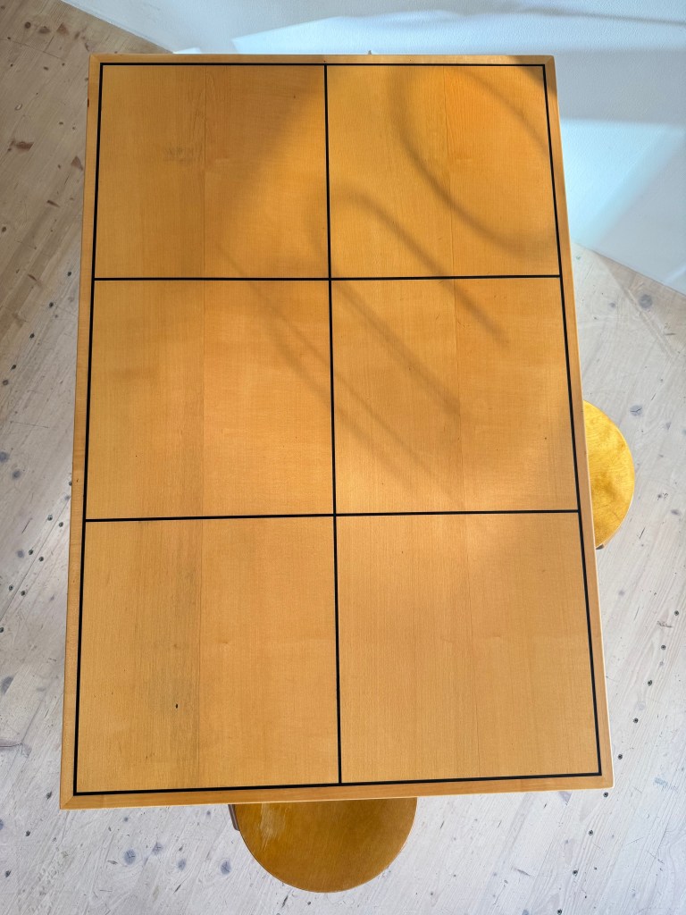 A classic example of 1950s Swiss minimalism, designed by Hans Bellmann for Horgen Glarus. This table features a clean, functional aesthetic with a beautiful contrast between the maple top and beech frame.