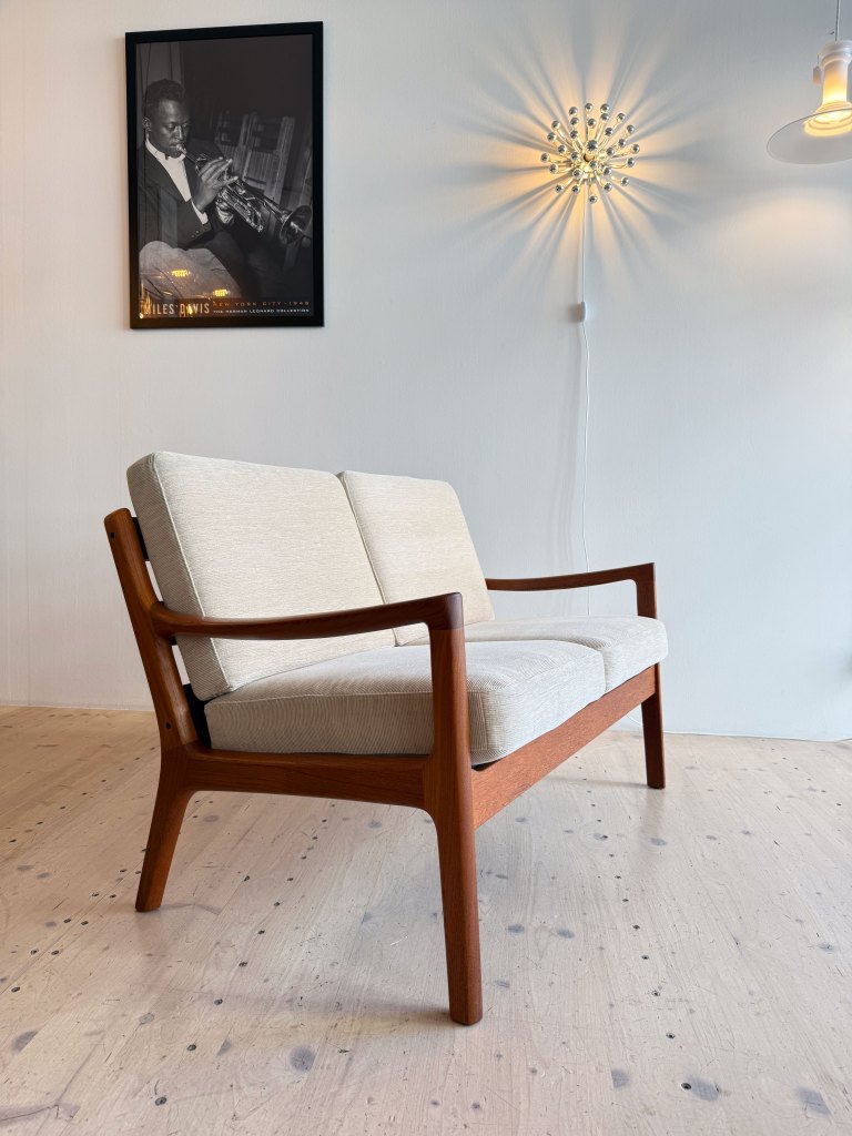 Designed by Ole Wanscher and produced by Cado in Denmark during the 1950s, this Senator love seat is a well-known example of Danish modern design. The sofa features clean lines, solid craftsmanship, and a simple, timeless form that fits easily into a range of interiors. A classic and comfortable piece from one of Denmark’s respected mid-century designers.